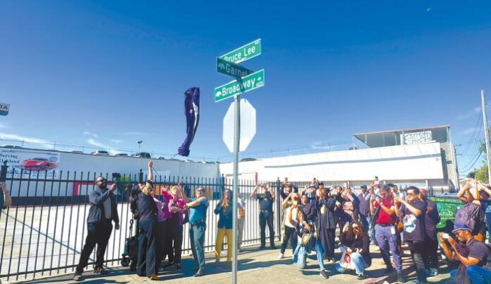 美国加州奥克兰市把加内特街重新命名为“李小龙大道”。(图源:美国《星岛日报》)