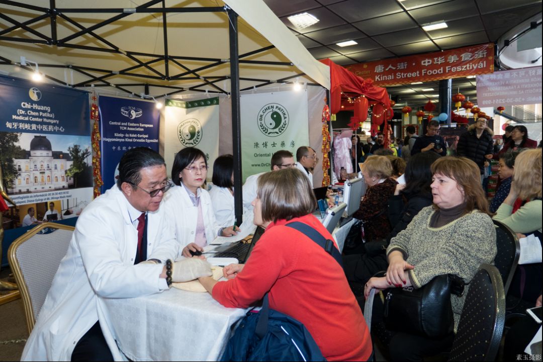 中国文化和旅游部驻布达佩斯办事处举行的旅游图片展犹如一道亮丽的风景线,吸引了众多观众驻足观赏;展区内的熊猫合照墙也备受追捧。匈牙利岐黄中医药中心的多名中医专家在现场为当地民众义诊,帮助他们了解中医药。