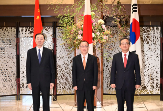 据悉,中日韩首脑会谈原则上每年在三国轮流举行,但受日韩关系恶化和新冠疫情影响,上一次首脑会谈是时隔约4年半的再次举行。日本政府打算尽早召开外长会谈,进而举行首脑会谈。