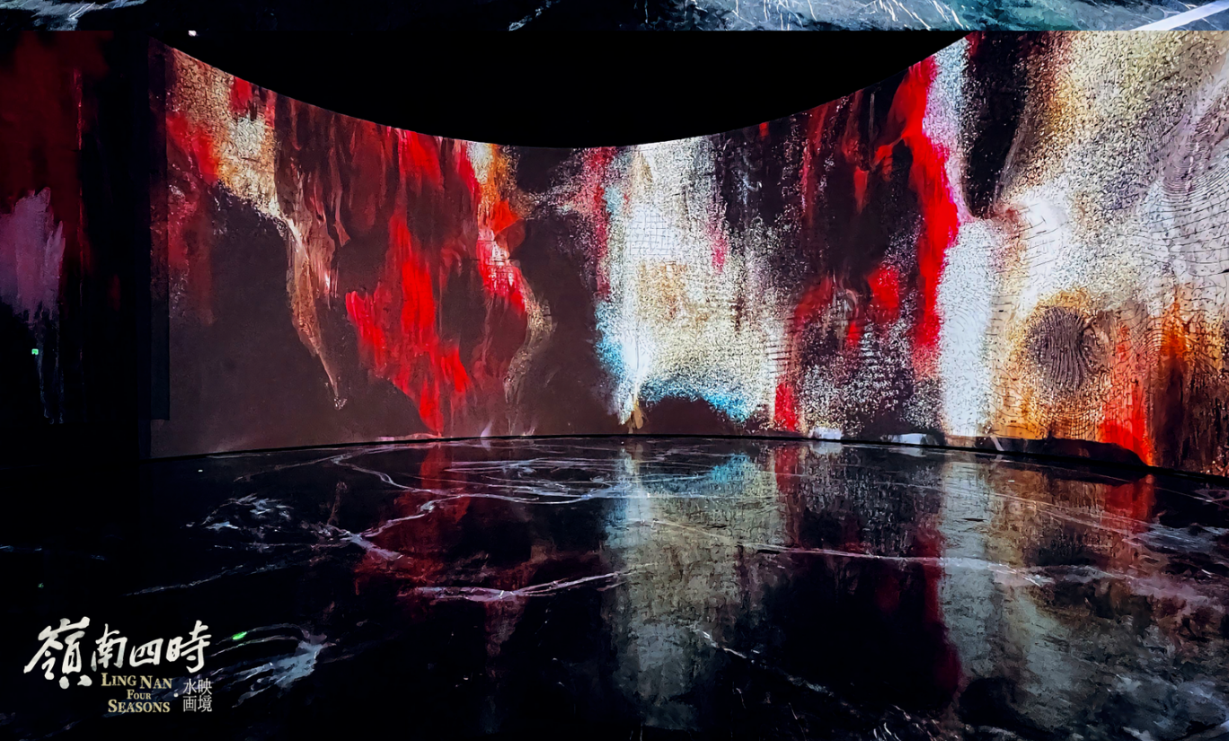 日前,广州艺术博物院(广州美术馆)“星空画意”数字艺术厅对外开放。数字艺术作品分为两部分,第一章《书·写》以广州艺术博物院藏书画精品为灵感,将静态“笔墨”转化为生动的意境,第二章《岭南四时:水映画境》以岭南之“水”为灵感,进行数字化的视觉演绎,展现了春之细雨、夏之热烈、秋之收获与冬之静谧。