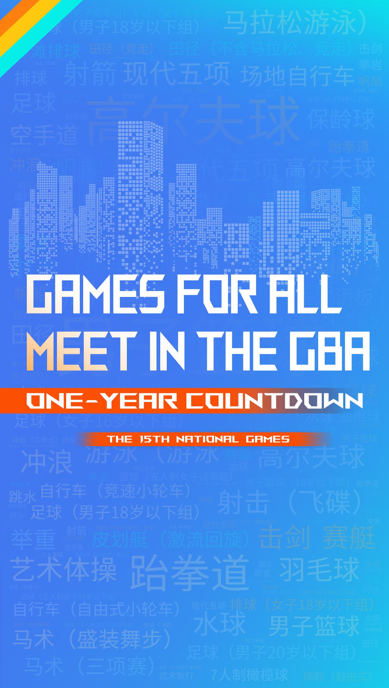The 15th National Games will be held from November 9th to 21st, 2025, across Guangdong, Hong Kong, and Macao, with Guangzhou hosting the opening ceremony and Shenzhen the closing ceremony. The Games will feature a total of 34 sports, including 401 events, and 23 mass participation sports, comprising 166 events (including 19 competitive sports with 145 events, and 4 exhibition sports with 21 events).