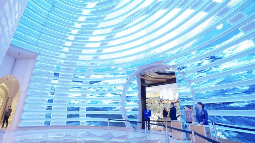 “保利美高梅博物馆”首展“蓝色飘带——探索神秘海域邂逅丝路遗珍”分为季风、文脉、交织,联结四个主题空间,采取文物与当代艺术并重的原则,重点展出与海上丝绸之路相关的出水文物,同时体现出澳门深厚的文化底蕴与悠久的历史传统