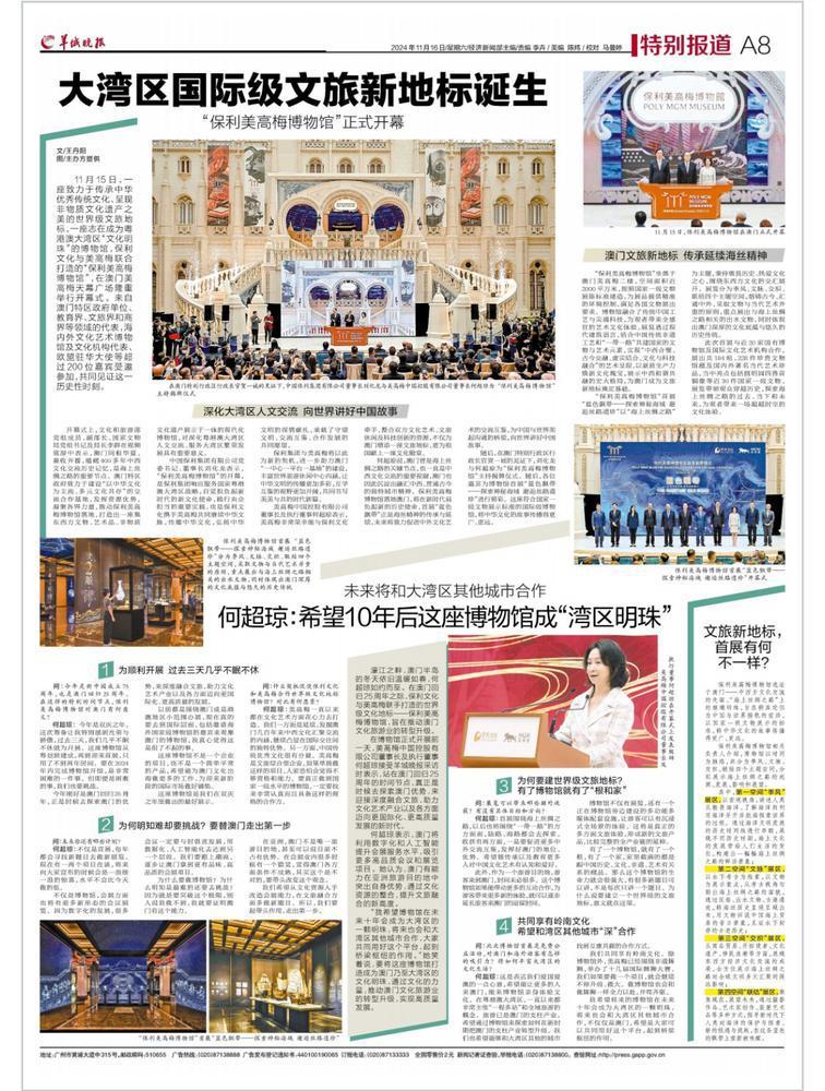 羊城晚报:此次博物馆首展是免费公益活动,对澳门和海外游客有怎样的吸引力?将如何丰富大湾区的文化生活?