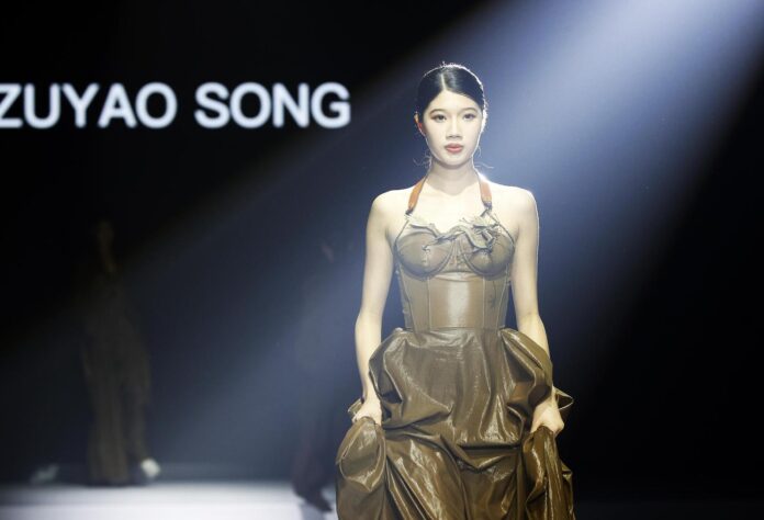 第22届“虎门杯”国际青年设计(女装)大赛总决赛冠军、广东选手宋祖耀在今年决赛间隙发布新品秀