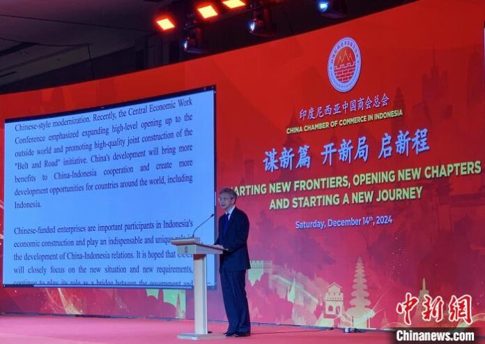 王鲁彤在致辞中表示,今年11月,普拉博沃总统成功访华,双方决定打造具有示范引领作用的全方位战略伙伴关系,构建具有地区和全球影响力的中印尼命运共同体。近年来,中印尼经贸关系保持强劲发展势头。中资企业是印尼经济建设的重要参与者,在中印尼关系发展中发挥着不可或缺的独特作用。希望印尼中国商会总会紧密围绕新形势新要求,继续发挥政府和企业的桥梁纽带作用,进一步凝聚中资企业力量,指导会员企业坚持合规经营,履行社会责任,为不断深化中印尼各领域务实合作作出新的贡献。中国驻印尼使馆也将一如既往地支持商会工作,更好为中资企业服务。