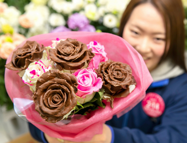 美好生活編輯精選 情人节前夕 巧克力色玫瑰花在日本深受欢迎 By guojiribao - 2019 年 2 月 14 日 0 168 据《朝日新闻》网站报道,情人节前夕,日本京都市伏见区的市花卉批发市场上市了一批“巧克力玫瑰花”。 据悉,这些玫瑰花是在荷兰加工而成的,原本为白色,涂上不同颜色的蜡层后呈现出了不同颜色。除巧克力色外,其实还有粉色、紫色及带银线和金线的颜色,但在日本,巧克力色的玫瑰花最受欢迎。这种神似巧克力点心的“巧克力玫瑰花”从1月底开始销售,目前已经售出了超过2000枝。