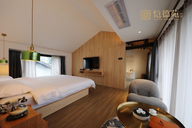 Located in the 600-year-old Langtou Ancient Village, He Chun Zhu combines modern comfort with Lingnan cultural heritage. Each courtyard offers a unique design, featuring cozy bedrooms, children’s beds, private tea rooms, and modern amenities like coffee machines and sound systems. Tourists can also explore the village’s 388 preserved Qing Dynasty brick buildings and stroll along ancient ancestral halls and residences, soaking in the beauty of traditional Lingnan architecture.
