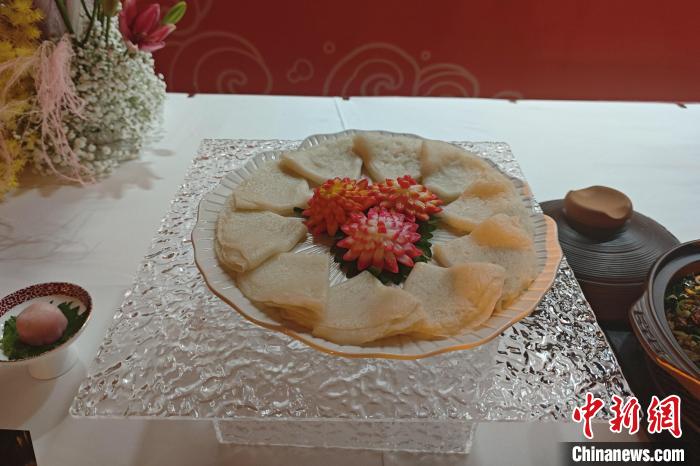 20日晚,福建泉州举办“鲜从海上来,蟳味在丰泽”簪花宴授权推广发布会。图为“簪花宴”中的“渔家披萨”。 吴冠标 摄