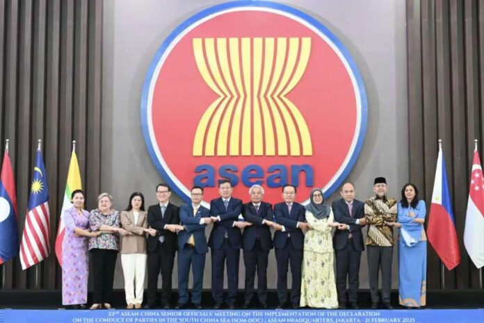 2025年2月21日,中国和东盟国家在印尼雅加达举行落实《南海各方行为宣言》第23次高官会。外交部边海司司长洪亮与马来西亚外交部秘书长阿姆兰共同主持会议,东盟国家高官及代表出席。