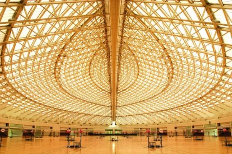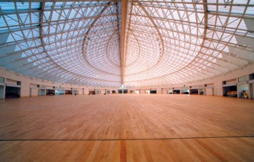 法国建筑大师保罗·安德鲁担纲设计的广州体育馆,由主场馆、训练馆和大众活动中心组成,场馆屋盖由圆锥在对称轴两侧切去一部分合并而成。
