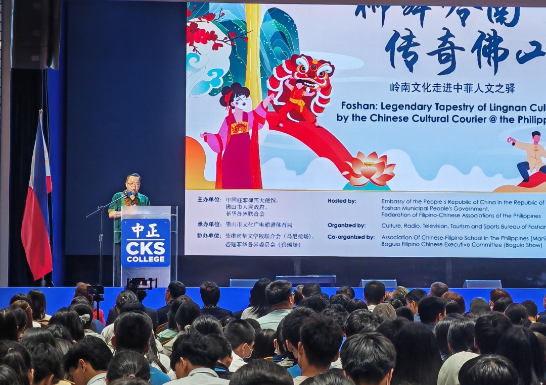 3月11日,由中国驻菲律宾大使馆、佛山市人民政府、菲华各界联合会共同主办的“狮舞岭南·传奇佛山——岭南文化走进中菲人文之驿”活动在菲律宾中正学院举行。黄溪连大使、佛山市代表团团长郭明远、菲华各界联合会主席蔡永宁等嘉宾出席并致辞。菲华社侨领、各华校师生等逾千人出席。