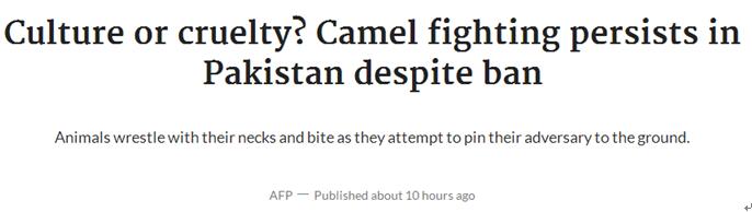 法新社在报道中表示,巴基斯坦几乎没有执行任何形式的动物比赛禁令。去年,该国通过了一项关于《防止虐待动物法案》的修正案。修正案建议:鼓励动物斗殴的罚款应从50卢比增加到30万卢比。