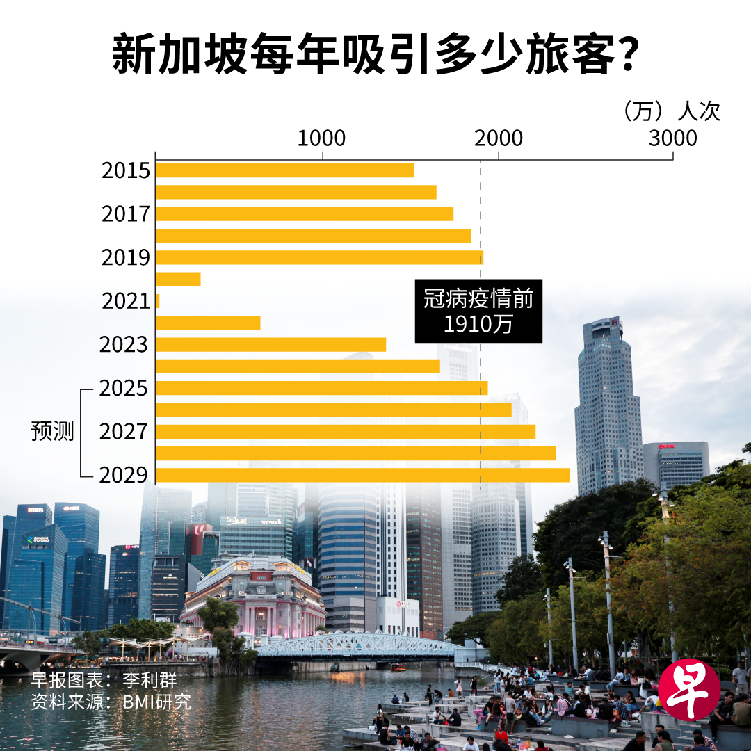近年入境游客人数逐步回升,惠誉国际(Fitch)旗下的BMI研究预计,2025年到访新加坡的游客人数将达到1940万人次,不仅高于去年的1650万人次,还将突破2019年1910万人次的水平。