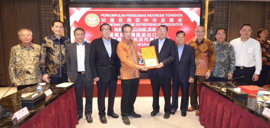 3月24日下午,中国医药保健品进出口商会(医保商会)代表团一行在周惠会长率领下访问印尼中华总商会。周惠会长一行受到中华总商会张锦雄总主席等领导的欢迎,双方进行了友好会晤。