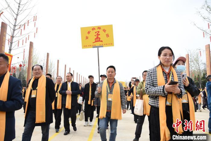 上午9时30分,来自海内外的嘉宾代表胸佩明黄丝巾,沿拜祖通道依次通过寻根门、系祖坛、轩辕桥、故里祠等进入拜祖广场。