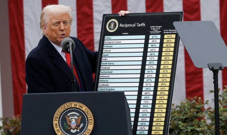 在一段视频中,特朗普展示了一块列有新增关税国家的白板。最先被提及的是中国和欧盟,分别被征收34%和29%的关税。随后,他点名了越南、台湾、日本和印度,接着才提到印尼、马来西亚和柬埔寨。