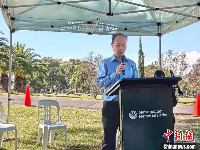 当地时间4日上午10时,澳大利亚华人总工会在悉尼六福公墓举行淘金潮华人死难者祭奠仪式。澳大利亚华人总工会主席陈青松诵读祭文。中新社记者 顾时宏 摄