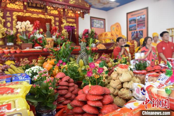 2024年8月5日,巴西圣保罗天后宫,巴西信众为湄洲妈祖祖庙分灵妈祖准备丰盛供品。记者林春茵摄