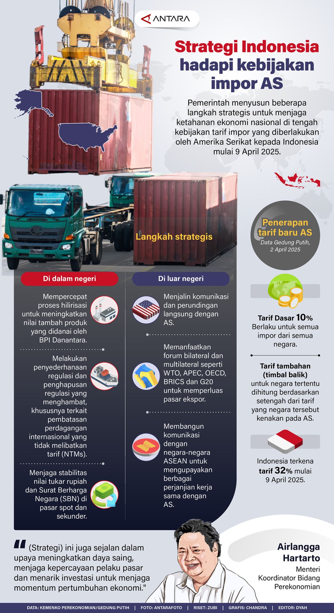 政府已准备了几项战略步骤,以在美国对印度尼西亚实施进口关税政策的情况下保持国家经济弹性。(安塔拉)