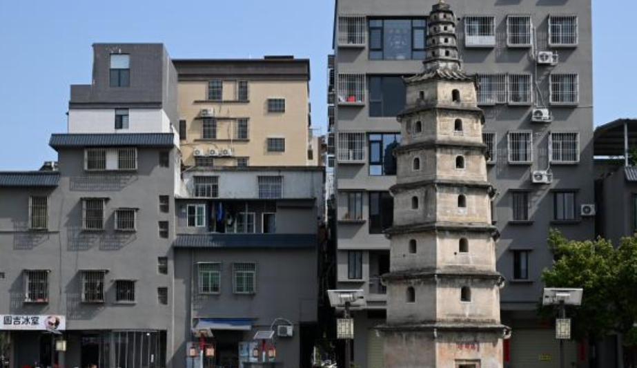 4月7日,探访广东省汕头市腾辉塔。腾辉塔是中国内地罕有的贝灰夯筑的“塔上塔”古塔,具有浓郁的地方特色和较高的历史、民俗、建筑艺术价值,为广东省文物保护单位。中新社记者 陈楚红 摄