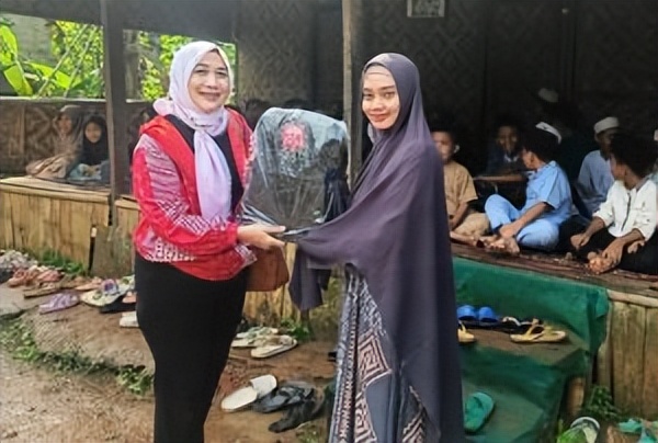南当格朗分会理事Artati(左一)分发学生用具给老师代表