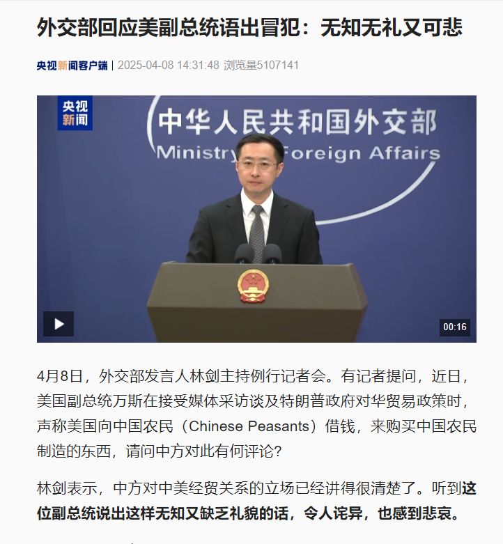 身为美利坚合众国的副总统,万斯这次再以其粗暴无礼刷新了全世界的认知。