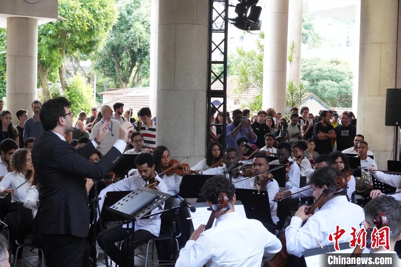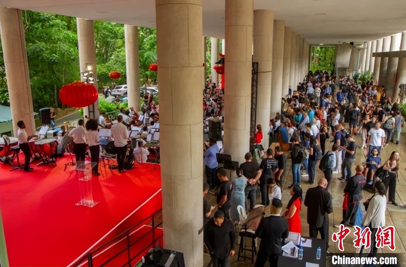 当天,文化展区里,观众沉浸式体验书法、茶艺、中医、中餐以及与中企的互动项目。文艺演出呈现中巴文化共生之美。里约天主教大学校园首次迎来舞狮表演,里约青年交响乐团精心编排的中国曲目《贝加尔湖畔》让观众陶醉其中,曼基尼斯芭蕾舞学校艺术化呈现中资企业公益成果,《海》之舞的蓝飘带与中国鲜红的国旗交相辉映,孔院教师高春晗的琵琶曲《阳春白雪》与杨怡琳同学的古筝联奏《凝眸》《就是哪吒》,以东方古老韵律和现代影视谱曲惊艳巴西观众。