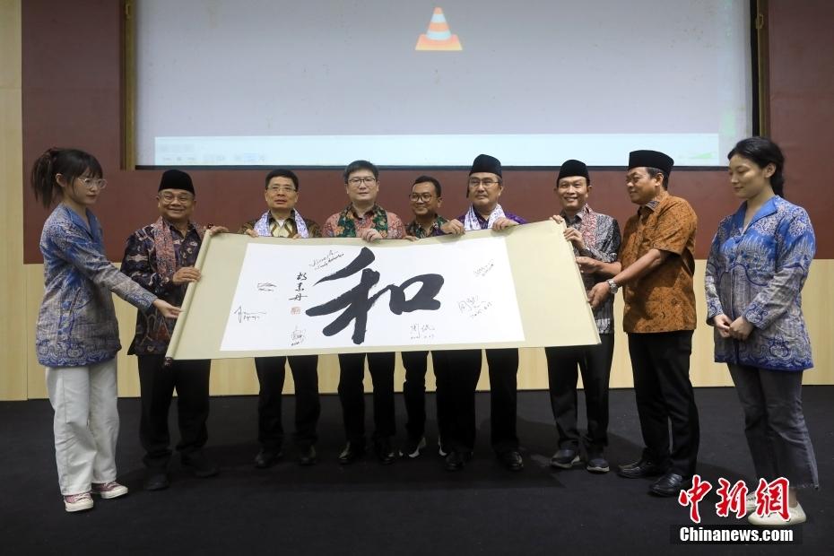 当地时间4月23日,“和韵流芳·四海同文”国际中文日活动在印度尼西亚阿拉扎大学孔子学院举办。图为中国驻印尼使馆公使周侃、阿拉扎大学校长亚瑟普等嘉宾共同在“和”字卷轴上签名。中新社记者 李志全 摄中新社雅加达电 (记者 李志全)“和韵流芳·四海同文”国际中文日庆祝活动23日在印度尼西亚阿拉扎大学孔子学院举行,中国驻印尼使馆公使周侃、海尔集团董事局主席周云杰、阿拉扎大学校长亚瑟普等嘉宾,及200余名各界人士出席。