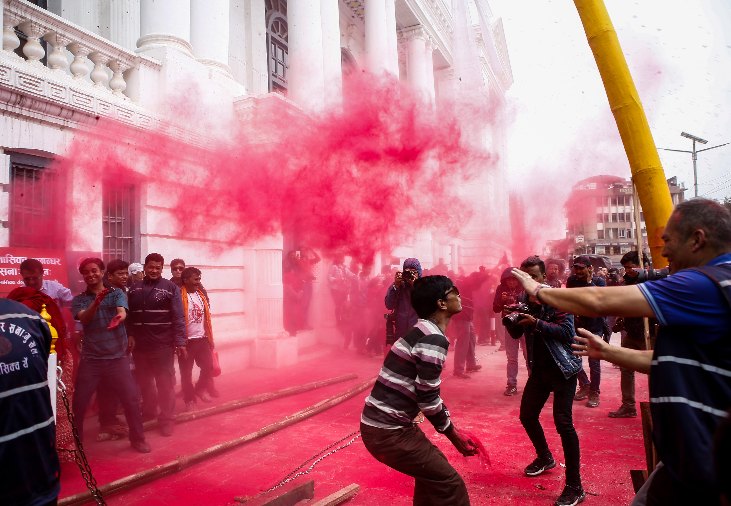 美好生活編輯精選 尼泊尔举办洒红节庆典 红烟漫天迎接春天 By guojiribao - 2019 年 3 月 15 日 0 84 当地时间2019年3月14日,尼泊尔加德满都,当地民众参加“洒红节”(胡里节)庆典。洒红节,也叫“胡里节”、“色彩节”,是印度传统节日,也是印度传统新年(新印度历新年于春分日)。 洒红节源于印度的著名史诗《摩诃婆罗多》,在每年2、3月间举行,庆祝时间的长短不一。在节日期间,人们互相抛洒用花朵制成的红粉,投掷水球,寓意正义战胜邪恶,同时迎接春天的到来。