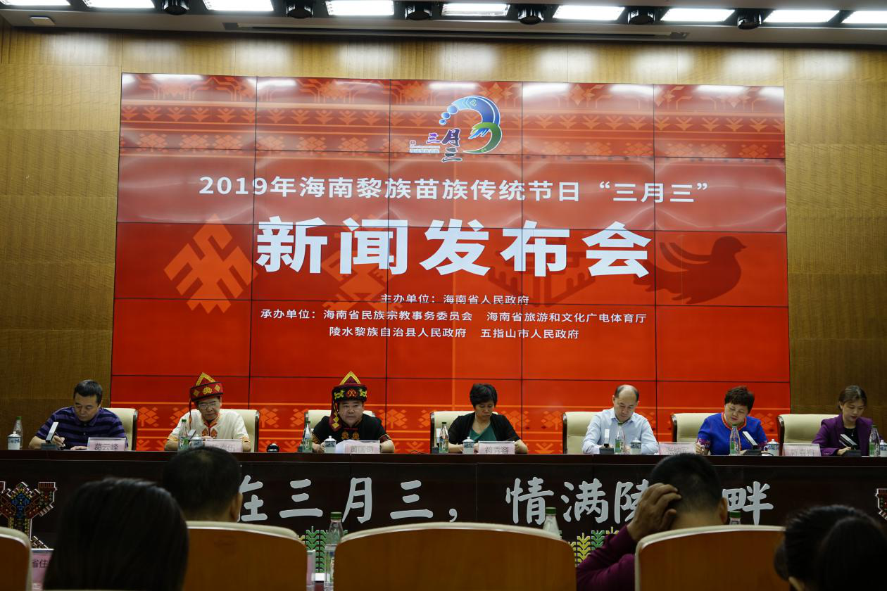 发布会由省旅文厅艺术处葛云峰处长主持,海南省民宗委副主任符秀容,陵水县委副书记、政法委书记张纳军,五指山市委常委、统战部长黄国奇,陵水县副县长陈春梅出席发布会。省民宗委、陵水县、五指山市有关人员,“三月三”组委会成员单位相关负责人及省内外媒体记者等参加发布会。