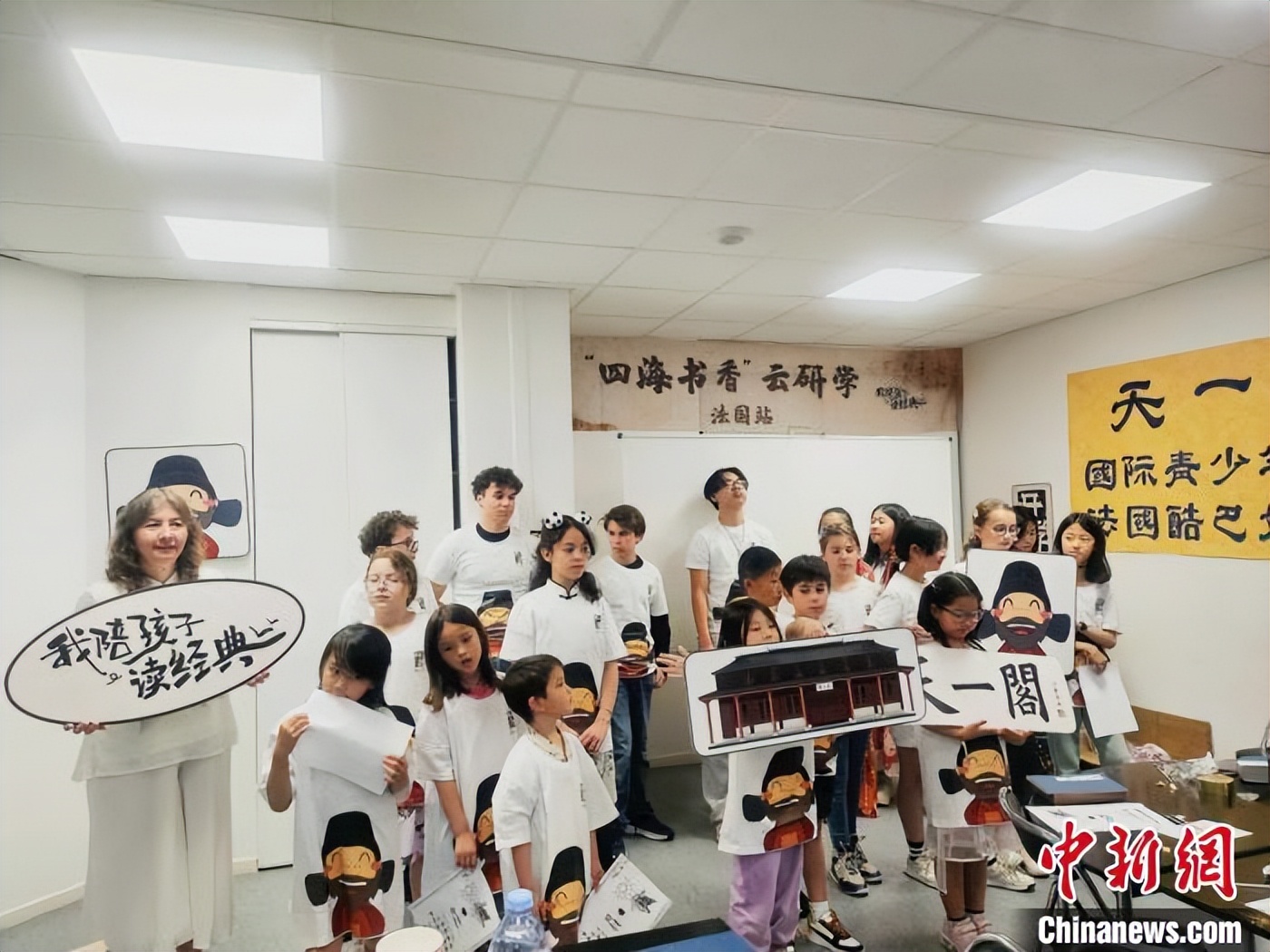 中新网宁波电 (张斌)当地时间5月12日,浙江宁波天一阁博物院“我陪孩子读经典”研学课堂来到法国巴黎,在云端与法国少年儿童共读经典。