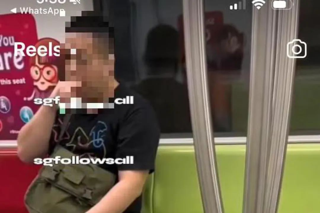 一名男子在地铁车厢内抽电子烟被当局突击住所。(卫生科学局提供)
