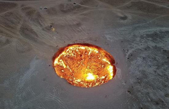 亚历山德罗说:“它的背景故事很吸引我。当时是苏联在沙漠上大量钻探天然气,错误的计算导致了钻井平台倒塌。周围无法居住了,而燃尽危险气体是最佳处理方法。然而事不遂人愿,气体燃不尽,还吸引了一波游客前来围观,政府可不怎么乐意呢。”