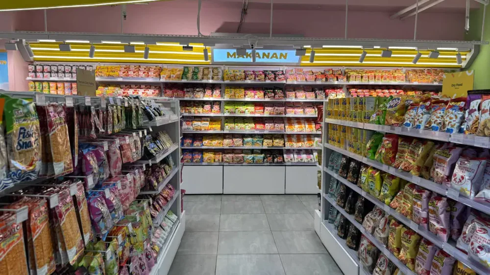 在笔者走访的印尼购物中心中,不少OH!SOME的店铺比MINISO更大,位置也更优。与MINISO主打IP不同,OH!SOME切中印尼人对零食的喜好,店面中设有以方便面墙为代表的超大零食区。这些都是基于印尼人的喜好做出的调整。