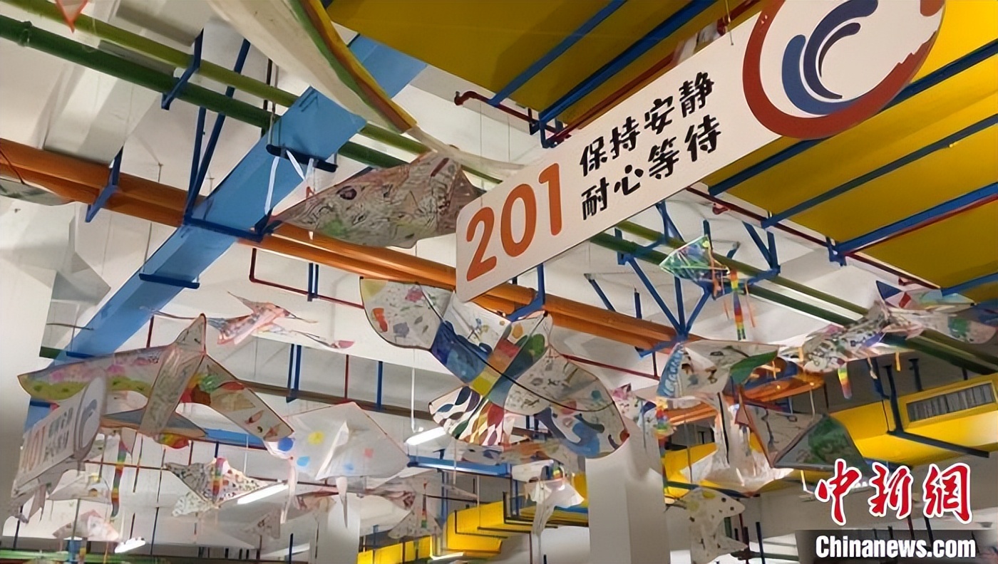 中新网杭州电(林波)近日,走进浙江省杭州市奥体实验小学的地下接送中心,各种五彩斑斓的管道变成孩子们穿越时空的通道,手绘风筝悬挂在“空中”,孩子们创作的装置艺术陈列在展示柜上,原本单调的地下停车场变成了充满童趣的艺术长廊。
