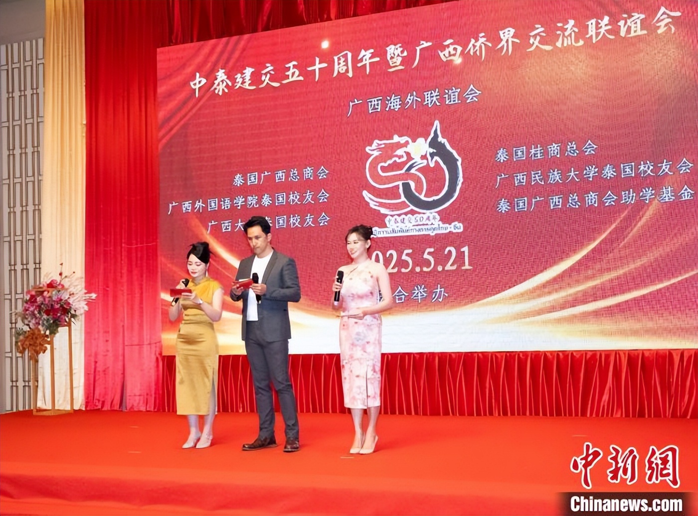 中新网曼谷电 (记者 李映民)当地时间21日下午,由泰国广西总商会、泰国桂商总会、广西外国语学院泰国校友会、广西民族大学泰国校友会、广西大学泰国校友会、泰国广西总商会助学基金会联合主办的“庆祝中泰建交五十周年暨广西侨界交流联谊会”在泰国曼谷举行。