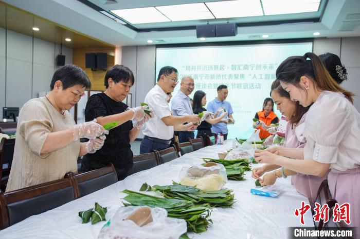 5月29日,广西南宁举行“同舟共济扬帆起·智汇南宁创未来”2025年南宁市新侨代表聚焦“人工智能+”座谈会暨端午节联谊活动,40余名来自东盟国家的新侨代表共商人工智能产业未来,共同参加包粽子、钓粽子、投壶、射靶等端午节传统活动,共叙端午情。