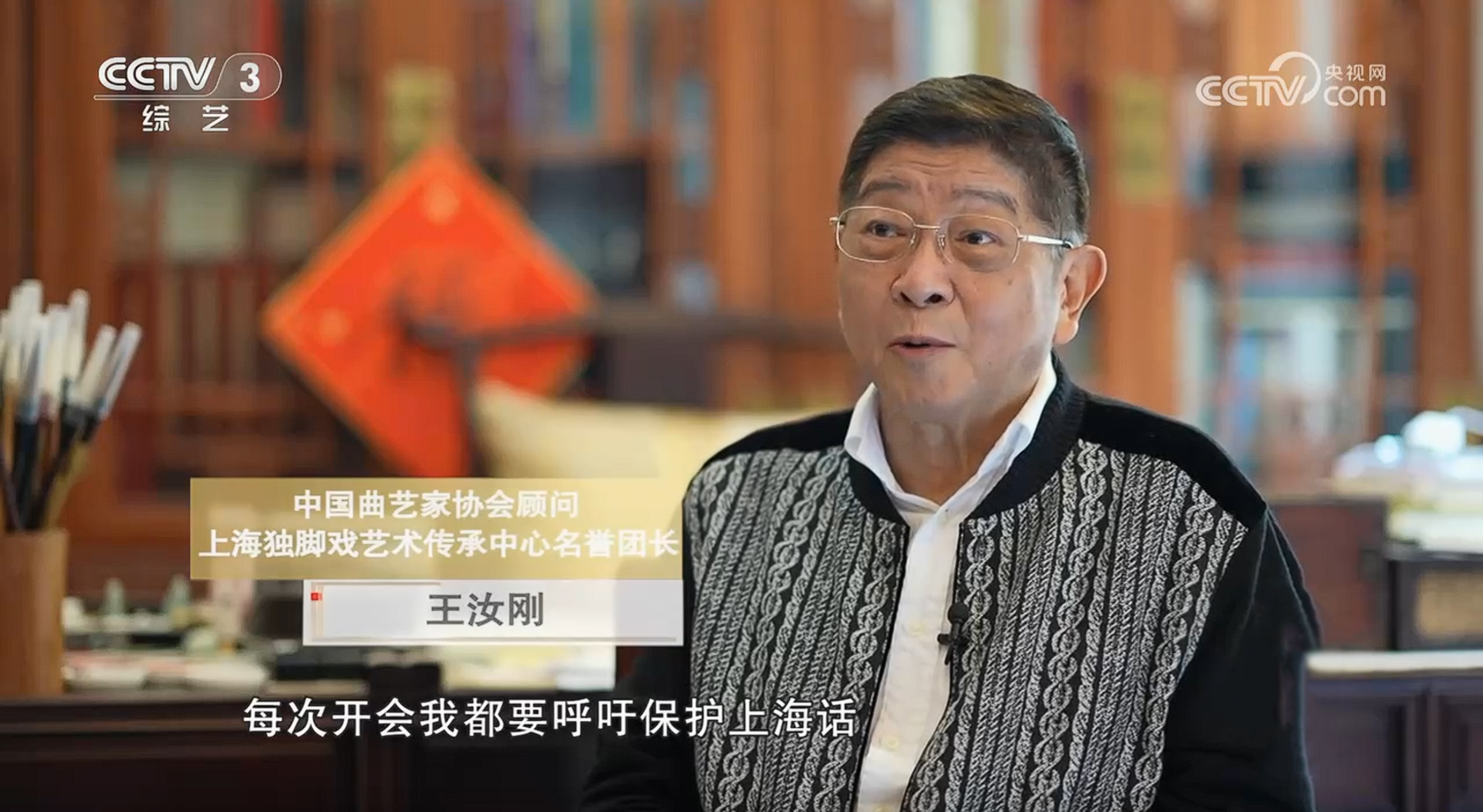 王汝刚:滑稽戏,国家下了很多政策对它保护,但是我们现在面临一个就是语言的不流通,各地的方言在大量地流失,所以我作为一个人大代表,每次开会我都呼吁保护上海话,保护地方话。我一辈子我看了很多传统的戏曲,都有这么个过程,就像花一样,从没有到有,从含苞待放到盛开,第二茬的开放,这个很自然的规律。所以在这个剧种,在这个曲种最衰态的时候,我也没有退却,我知道往往厚积薄发,国家有这么对传统艺术的支持,有民间这么的呼吁,我相信我们这个传统艺术一定会绚丽,一定会有更美好的明天。