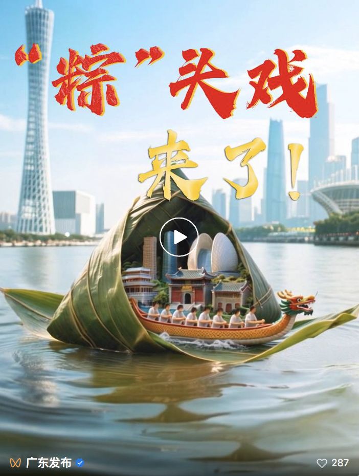 華夏視點 “粽”头戏开场! 2025 年 6 月 1 日 粽叶飘香,龙舟竞渡 又是一年端午至 除了软糯香甜的粽子 最让人热血沸腾的 莫过于那劈波斩浪 气势如虹的龙舟赛 今年端午 广东的龙舟江湖 更是上演了一部震撼大片 准备好 跟着我们的镜头 一起感受这份 独属于岭南大地的 速度与激情 逐浪千帆过 端午祈安康 这不仅是一场场 速度与力量的角逐 更承载着人们对风调雨顺 国泰民安的美好祈愿 是岭南水乡 千年不息的文化传承