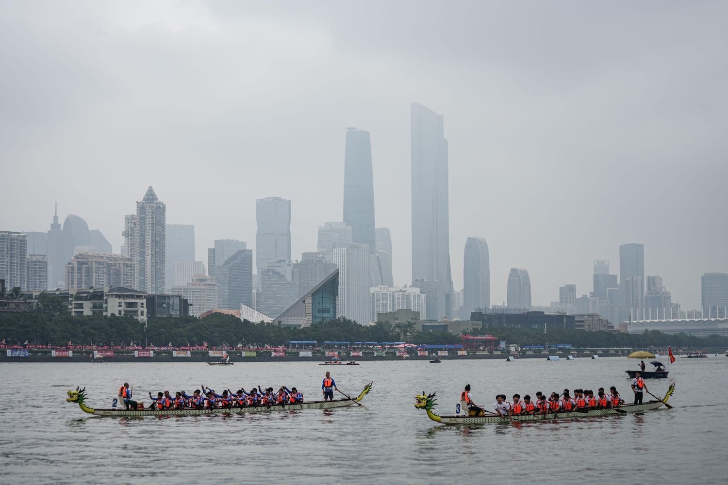 6月1日,2025年广州国际龙舟邀请赛在中大北门广场至广州大桥之间的珠江河段举办