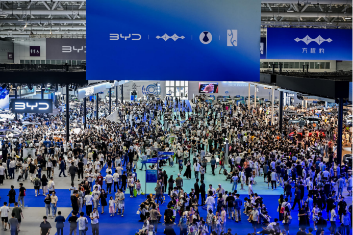 正在举办的粤港澳大湾区车展,比亚迪集团倾力打造1号馆-比亚迪集团专馆及外场智能化街区4万平方米的体验场景,携手旗下品牌比亚迪、方程豹、腾势、仰望带来多种自研新能源核心技术展示,体验“兆瓦闪充油电同速”、天神之眼智能驾驶辅助系统,观赏灵鸢无人机秀、比亚迪科技快闪。