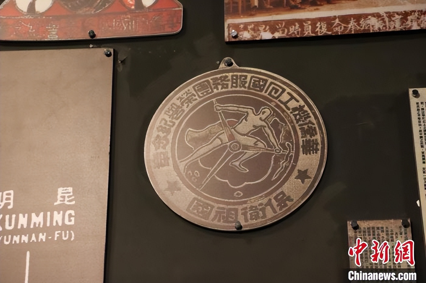 近日,中新社记者在马来西亚华人博物馆采访。图为馆中展出的“华侨机工回国服务团荣誉纪念章”图标。 郭靖宇 摄