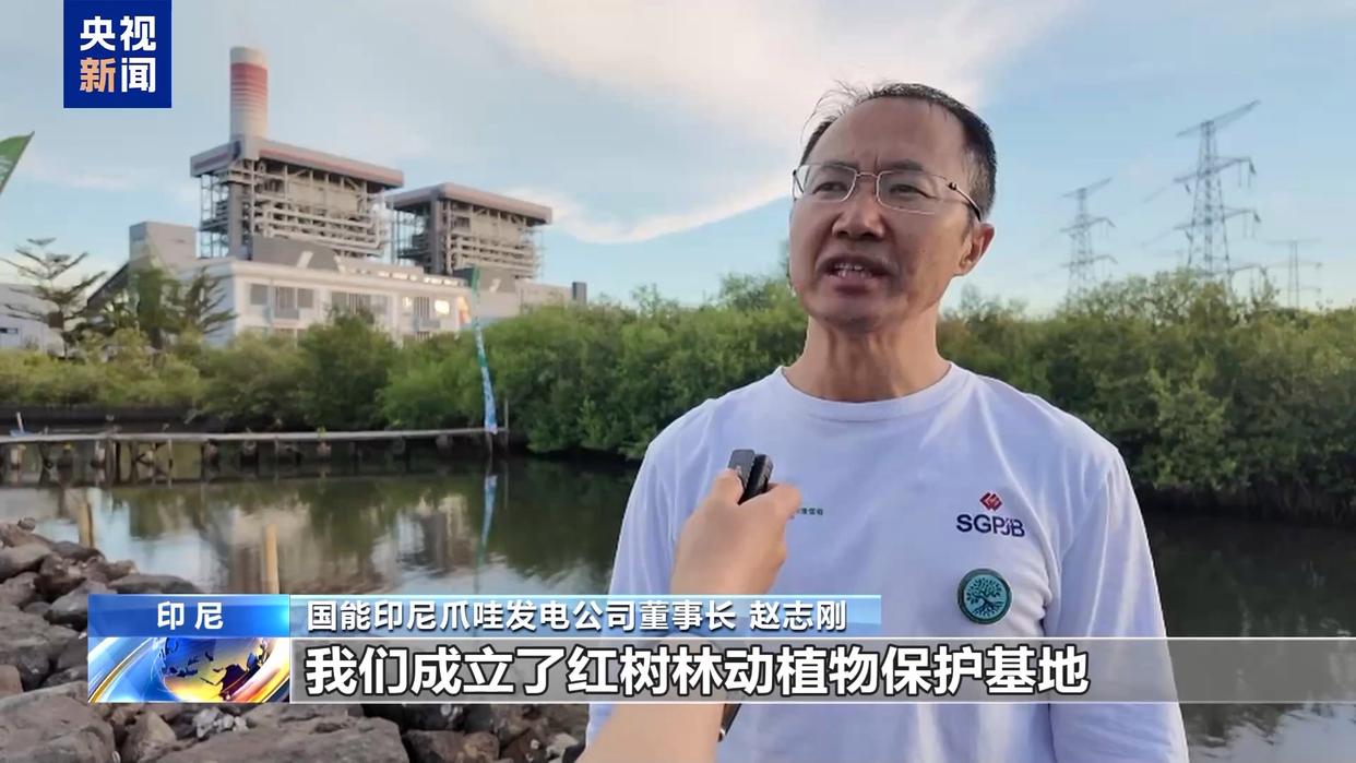 总台记者 李琳:我现在所在的位置是印尼(单机容量)最大的火力发电厂。我现在所在的这个平台有80米高。从我身后大家可以看到一大片红树林和电厂是和谐共生。那么在最开始,这片红树林只有5公顷的面积,而随着企业不断地种植,现在已经达到了20公顷。