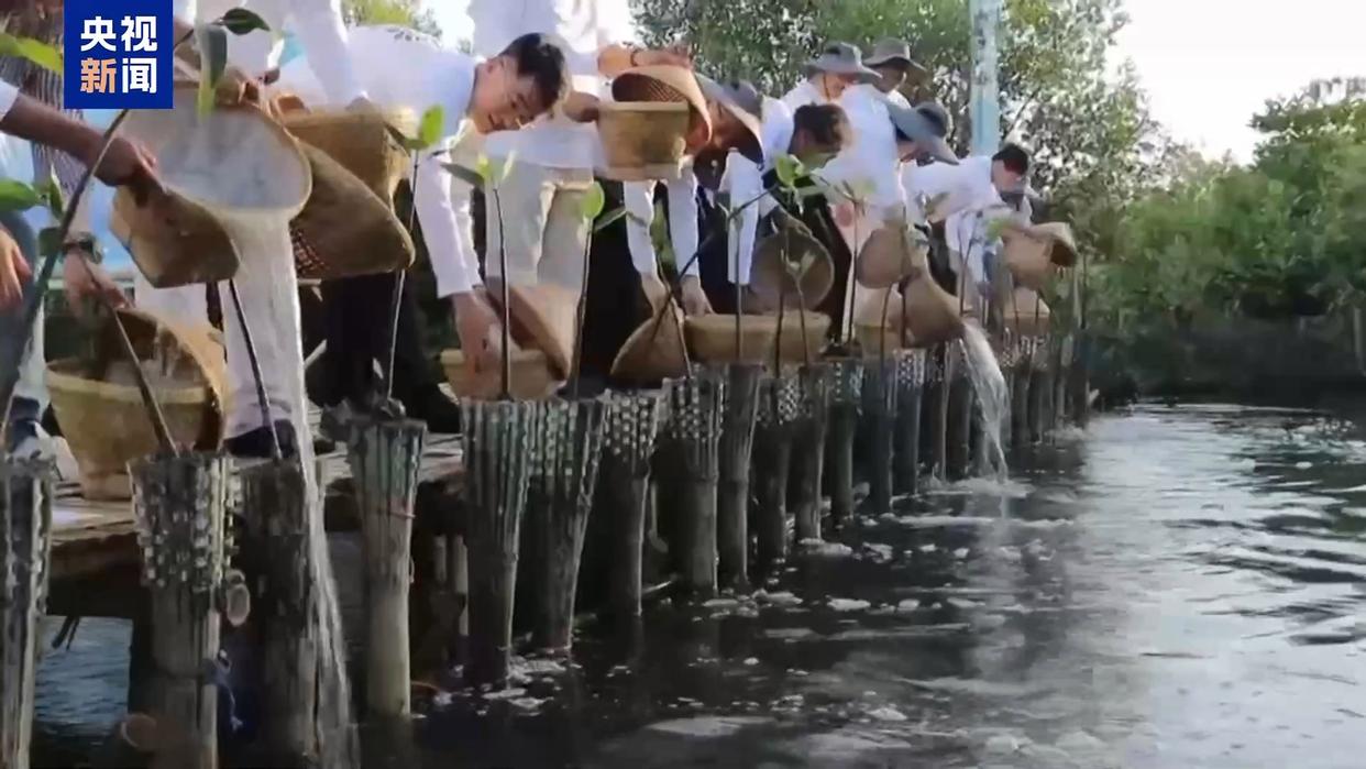 就在记者探访的当天,又一批红树苗被种入沿海滩涂。这样的生态投入也带来了民生收益,周边居民有了新的就业机会,渔业资源也逐渐恢复,越来越多珍稀野生动物在此安家。