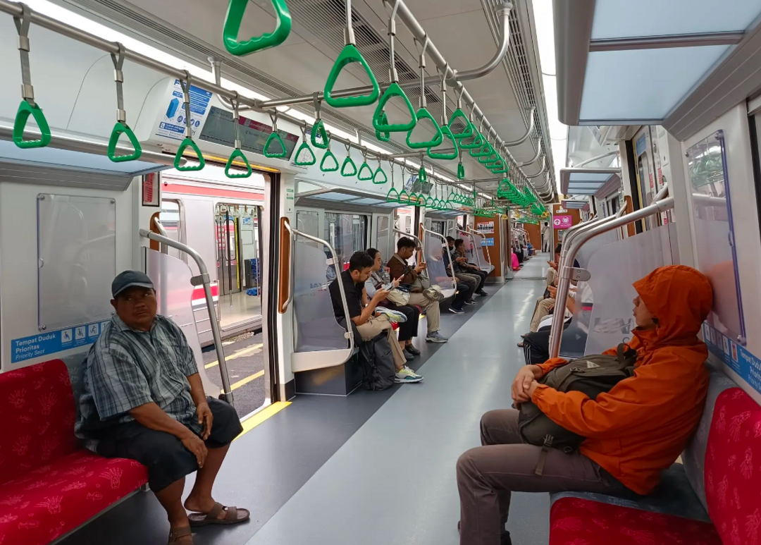 阿斯多称,列车座椅设计亦有所更新,包括将优先座椅特别以灰色标示,并安排在靠近车门的位置,方便老年人、孕妇及残障人士使用。列车1号与12号车厢尾部还设有专为轮椅乘客设计的专属区域。此外,这批中国制造的通勤线电动列车也融入了印尼文化元素。座椅和车内装饰反映了雅加达的文化特色,如“Ondel-ondel”(雅加达传统巨型人偶)和“Tanjidor”(雅加达传统管乐团)图案,展现出地方特色与文化认同。