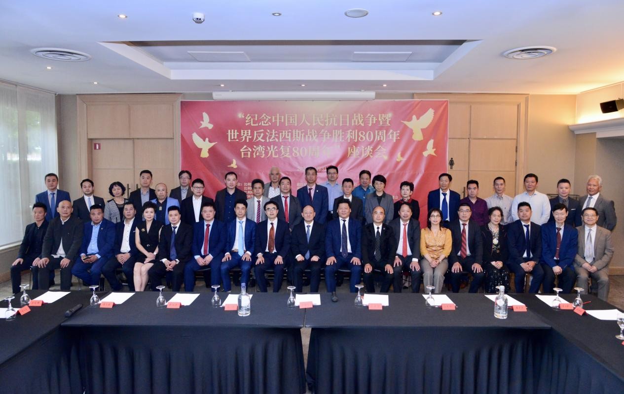 人民网布鲁塞尔电 (记者牛瑞飞)为铭记历史、弘扬抗战精神、坚定统一信念,纪念中国人民抗日战争暨世界反法西斯战争胜利80周年、台湾光复80周年座谈会3日在比利时东部城市圣尼古拉斯市举行。此次活动由比利时中国和平统一促进会联合比利时18家华侨华人社团共同主办,来自两岸台胞民间交流促进会的代表团、中国驻比利时大使馆、比利时各大侨团及旅比台胞代表等130余人出席座谈会。