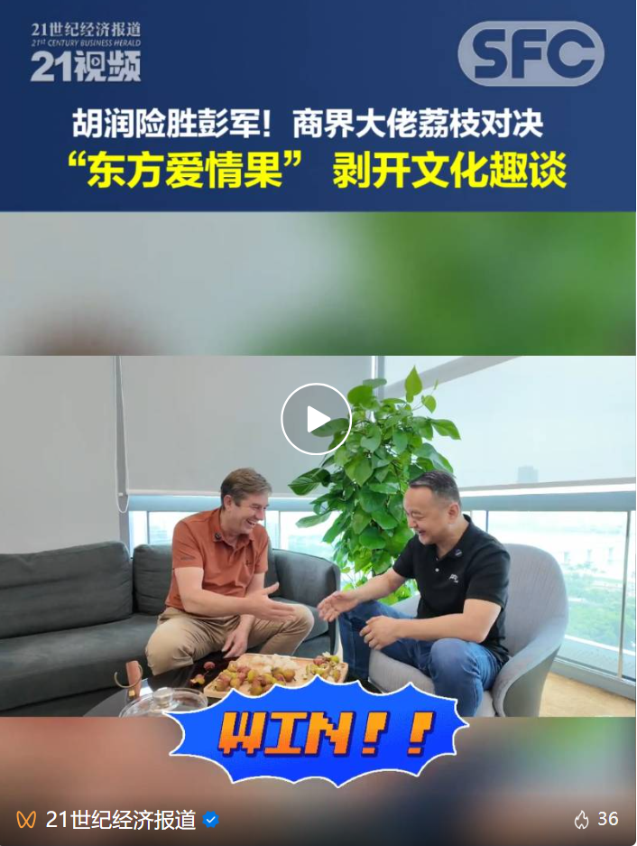 目前,这一IP正以文化深度拓展市场广度。胡润百富董事长兼首席调研官胡润以“东方爱情果”之名发起一分钟剥荔挑战赛,向全球推介广东荔枝、讲述中国经典的爱情传说。辛选集团知名主播蛋蛋也喜欢上“东方爱情果”这个IP,为品尝荔枝的人送上甜蜜祝福。