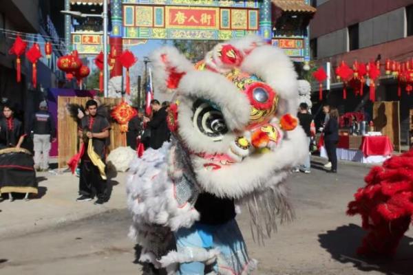 2024年6月30日,智利首都圣地亚哥首座唐人街牌坊正式揭牌。牌坊坐落在批发区内,彩绘的斗拱层层叠起,鎏金勾勒的龙纹、云纹等图案点缀其间;两根朱红色立柱矗立,与牌坊前一对威严的石狮相互映衬。