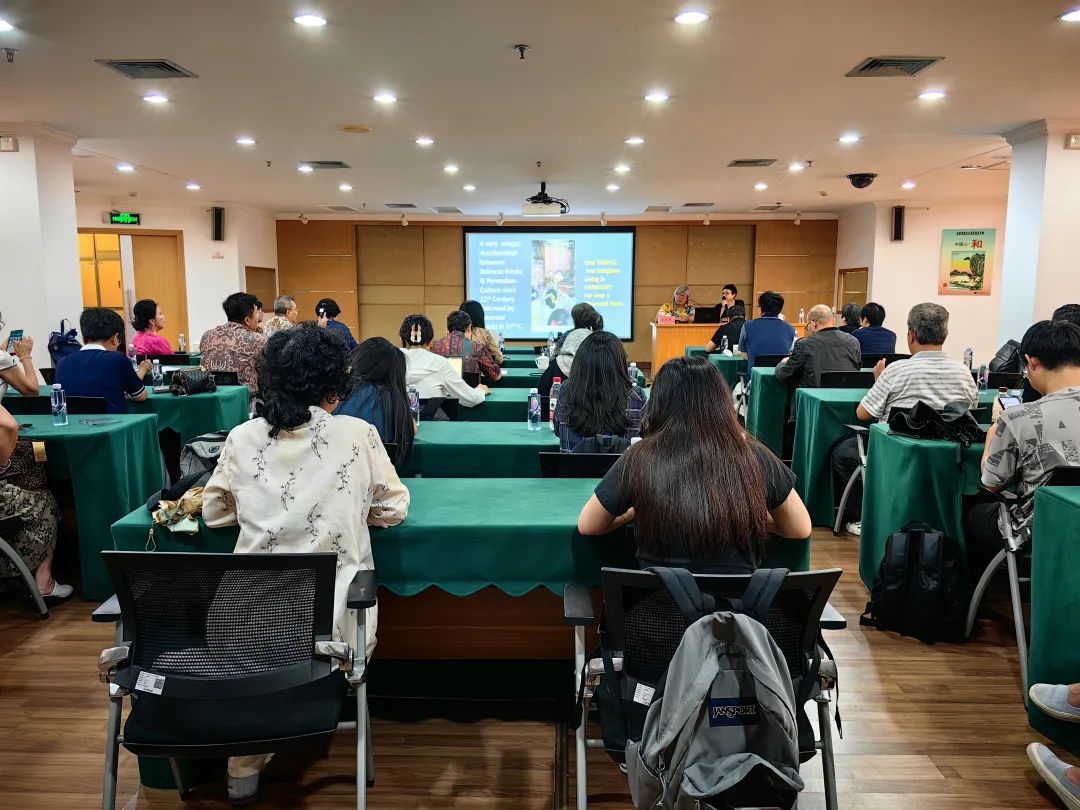 林振鹏祖籍厦门,为第三代印尼华人,此次讲座是其寻根访祖之旅的重要行程。他以详实史料回溯印尼中国移民历史,结合其创办的印尼文登华人历史博物馆、林氏遗产博物馆,深入剖析土生华人文化遗产保护传承路径,展现华人在印尼文化塑造与国家建构中的重要贡献。