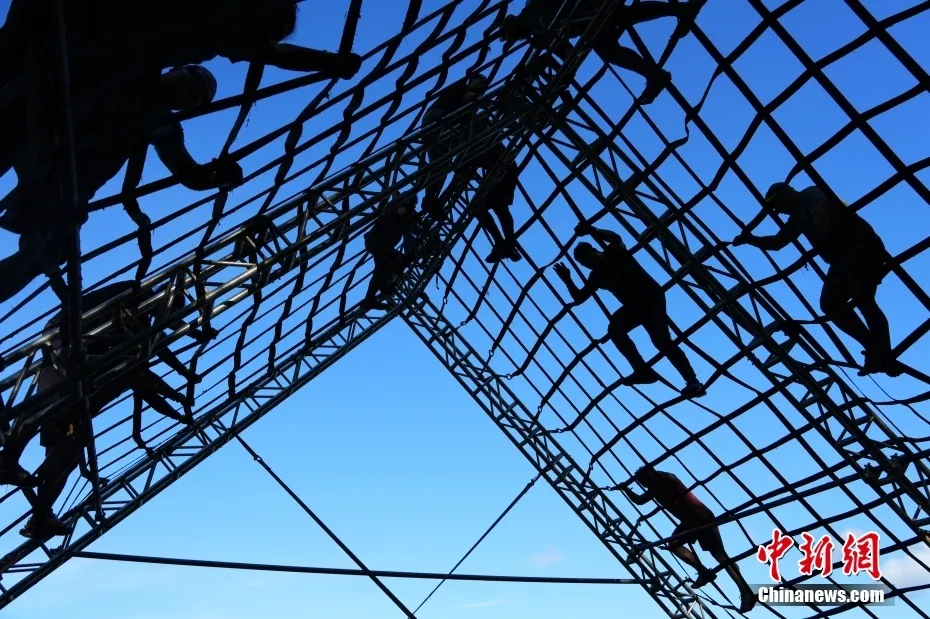 当地时间6月7日,美国斯巴达勇士挑战赛在纽约州伍德斯托克举行,纽约精英健身募集百余名华人选手参加比赛。斯巴达勇士挑战赛起源于美国,已有20多个国家与地区获授权举办这项赛事。图为选手们完成跨越屋脊环节。(中新社记者 廖攀摄)